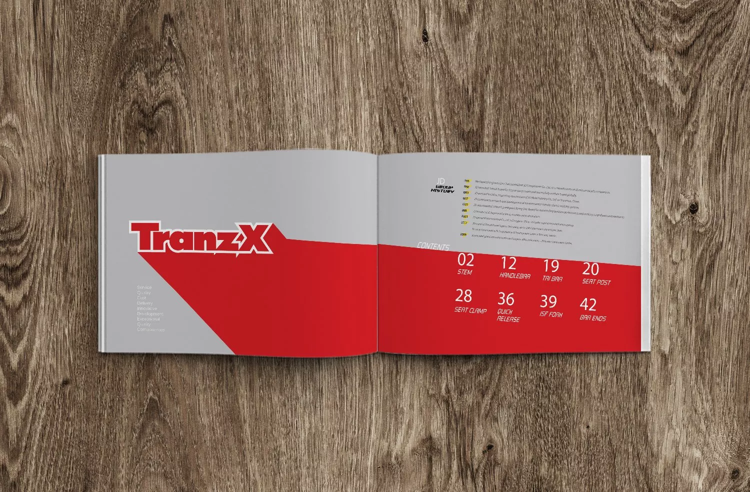 老品牌TranzX ,外銷歐洲英國,德國,「專門」極限運動器材設計。速度感與性能,是腳踏車的重要特點。以色塊交錯的方式去帶出整體動感,強而有力的感官視覺,只要一瞥過,便會抓住消費者目光,同時此種表現方式,亦顯出本產品的高機能性,使愛車者能掌握住本產品的特點,一目了然。